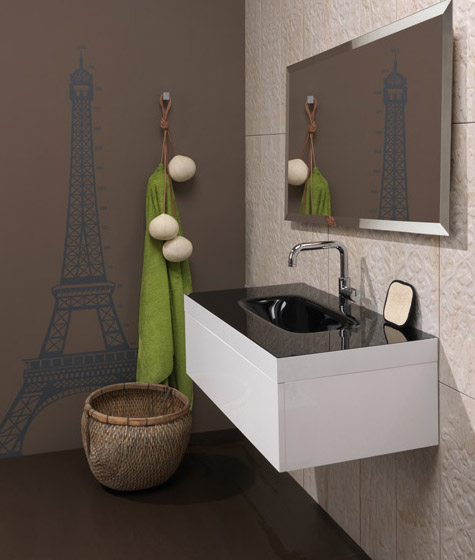 La empresa milanesa Regia fabrica y distribuye mesadas y lavatorios de vidrio con hermosos y vistosos colores para sanitarios modernos.