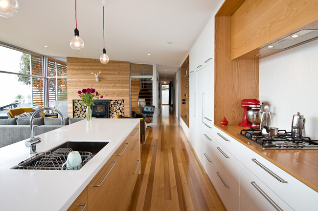La casa, de volumen unico, tiene una interior minimalista, con las mejores vistas a la ciudad de Hobart.