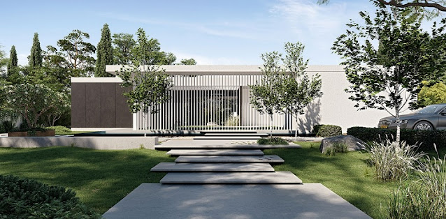 Tiene una volumetria original caracterizada por volumenes cubicos, horizontales y con voladizos, con una gran superficie vidriada, la luz es la referente de la vitalidad de la casa.